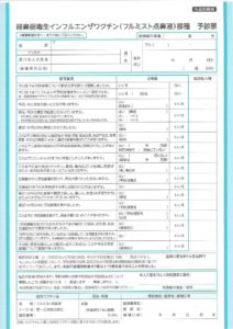 経鼻弱毒生ワクチン(フルミスト点鼻液)予診票